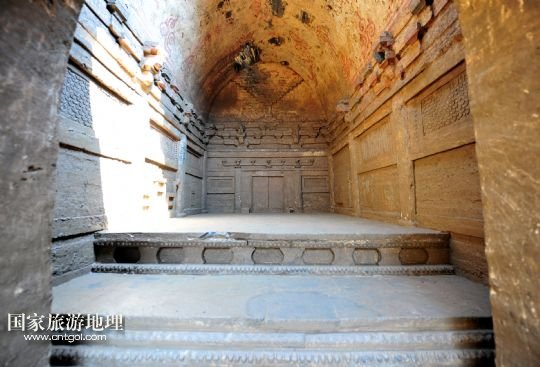 國家旅游地理 湖北襄陽8月7日訊 8月7日拍攝的湖北谷城縣肖家營仿木磚雕壁畫墓。當(dāng)日,湖北省襄陽市谷城縣肖家營北宋仿木磚雕壁畫墓內(nèi)部清理完畢,考古專家認(rèn)定墓中的宋代仿木磚雕、壁畫是湖北至今發(fā)掘的同時代古墓中保存最為完好的。