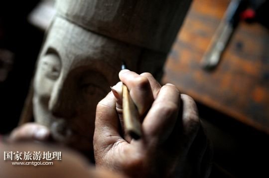 譚圣慈老人今年72歲,從22歲開始學(xué)雕刻儺戲面具,迄今,已經(jīng)堅(jiān)持了50年。老人說,他制作的面具因工藝精湛,造型優(yōu)美,曾吸引遠(yuǎn)方的客人高價(jià)購買。但是,卻少有人來學(xué)習(xí)面具的雕刻與制作。儺戲于2006年被列入非物質(zhì)文化遺產(chǎn)名錄之后,政府加大了保護(hù)力度,但因?yàn)槊婢叩闹谱髦芷陂L、工序復(fù)雜,銷售渠道少等原因,仍無法吸引年輕人學(xué)習(xí)雕刻的興趣。為了收到心儀的徒弟,傳承這獨(dú)到的技藝,他到處發(fā)布免費(fèi)收學(xué)徒的信息。在他的堅(jiān)持下,今年暑期,鄉(xiāng)里有兩名對面具制作感興趣的男孩來到譚圣慈身邊學(xué)藝。老人高興地說:“我給他們講很多故事,就是希望他們能對此提起興趣,愛上木面雕刻,別讓這老手藝失傳了。” /新華社發(fā)