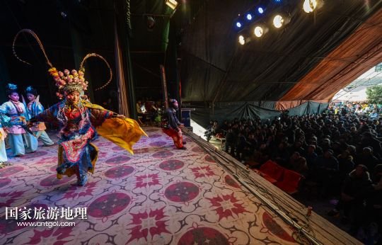 國家旅游地理 浙江金華1月3日訊 1月3日,武義壺山婺劇團在武義縣三板橋村演出,此次演出要連演3天。新年伊始,浙江省金華市武義縣的各個鄉(xiāng)鎮(zhèn)迎來了熱鬧的“婺劇迎春”,通過政府、企業(yè)、百姓多方出資的方式,邀請數(shù)十支婺劇團在武義各個鄉(xiāng)鎮(zhèn)演出, 幾乎場場爆滿。