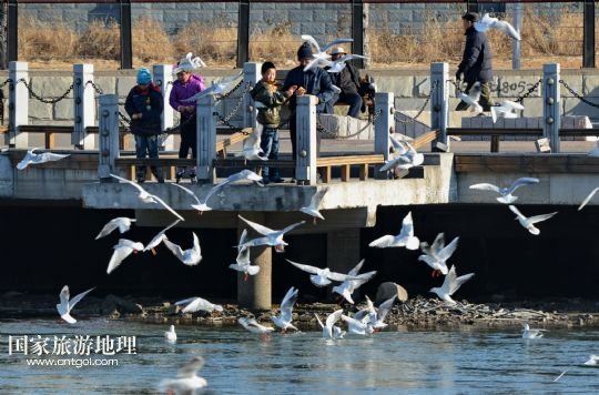 國家旅游地理 河北秦皇島1月13日訊 1月12日,一群海鷗在秦皇島市海港區(qū)新開河入海口處覓食。隨著氣溫不斷下降,在秦皇島沿海一線越冬的海鷗開始飛到市區(qū)內(nèi)的河道覓食,為冬日里的秦皇島市區(qū)增添了生機。 /新華社記者楊世堯攝