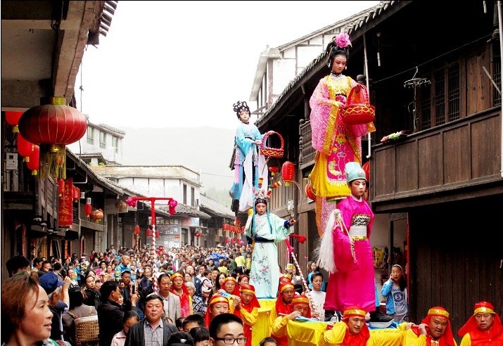 國家旅游地理 四川江油5月3日訊(記者 李方貴 文/圖) “來了!來了!好美?。?rdquo;昨(2)日上午,平日略顯冷清的江油市二郎廟鎮(zhèn)青林口村人潮涌動,萬人空巷。入選國家級非物質(zhì)文化遺產(chǎn)的“高抬戲”沉寂6年之后,在今年“五一”小長假期間“復(fù)活”了。