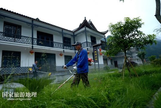 5月24日,板寮村的農(nóng)民在管理新村前的綠地。