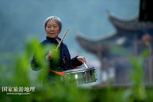 5月23日,板寮村文藝宣傳隊(duì)的老人在練習(xí)打鼓。