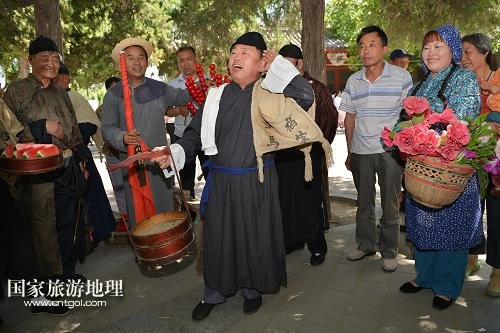 5月28日,傳統(tǒng)老北京吆喝表演者在后海小廣場(chǎng)表演叫賣(mài)吆喝。