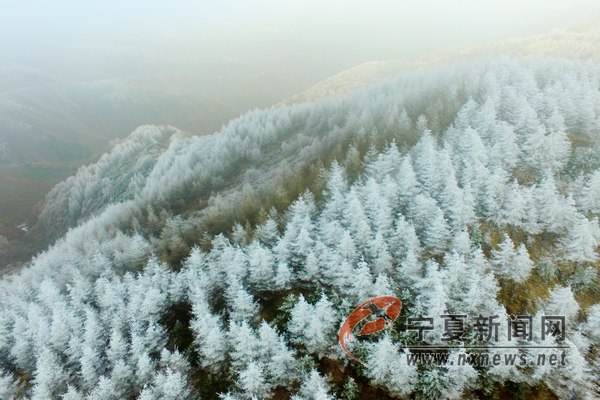 12月8日16時許,寧夏固原是六盤山隆德縣與涇源縣交界處突現(xiàn)霧凇,美麗的霧凇將山川樹木點綴的晶瑩剔透。 寧夏新聞網(wǎng)記者 祁瀛濤 攝