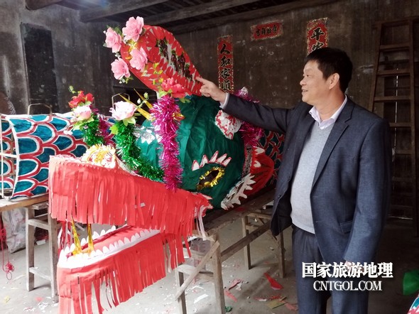 “老龍”在中國(guó)四堡雕版印刷展覽館門(mén)前慢悠游弋。鄒善水 攝